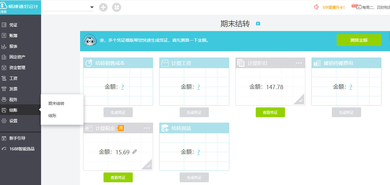 好会计新功能 当月凭证一键生成!